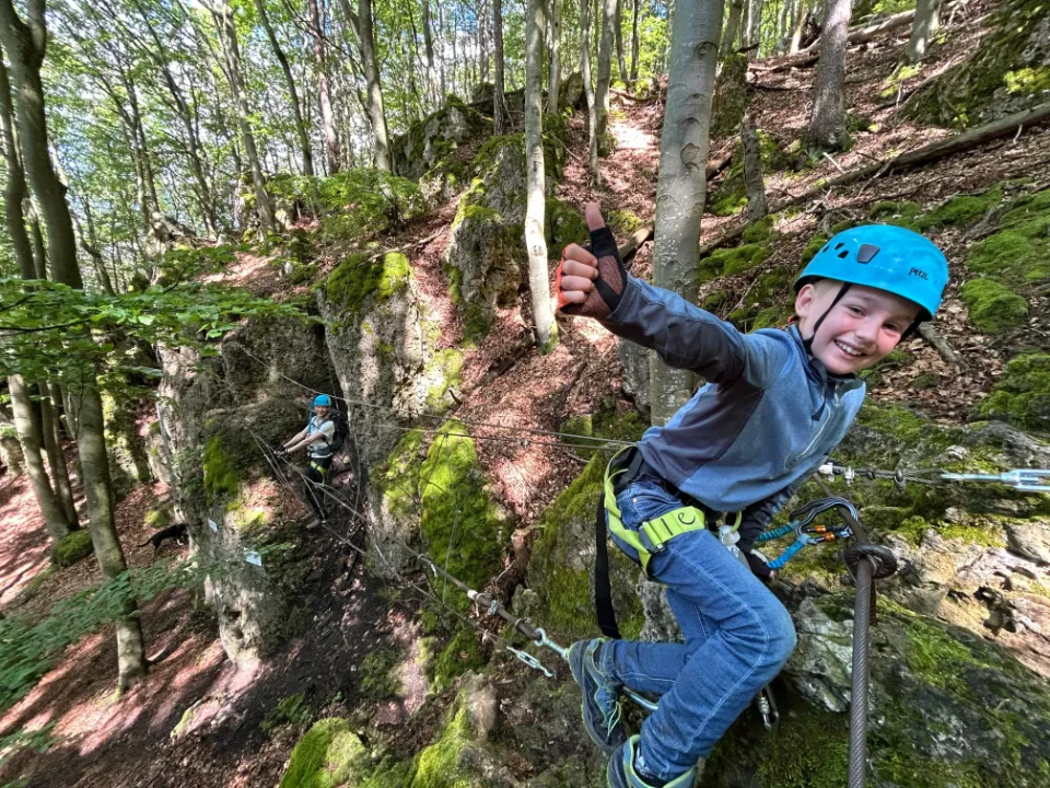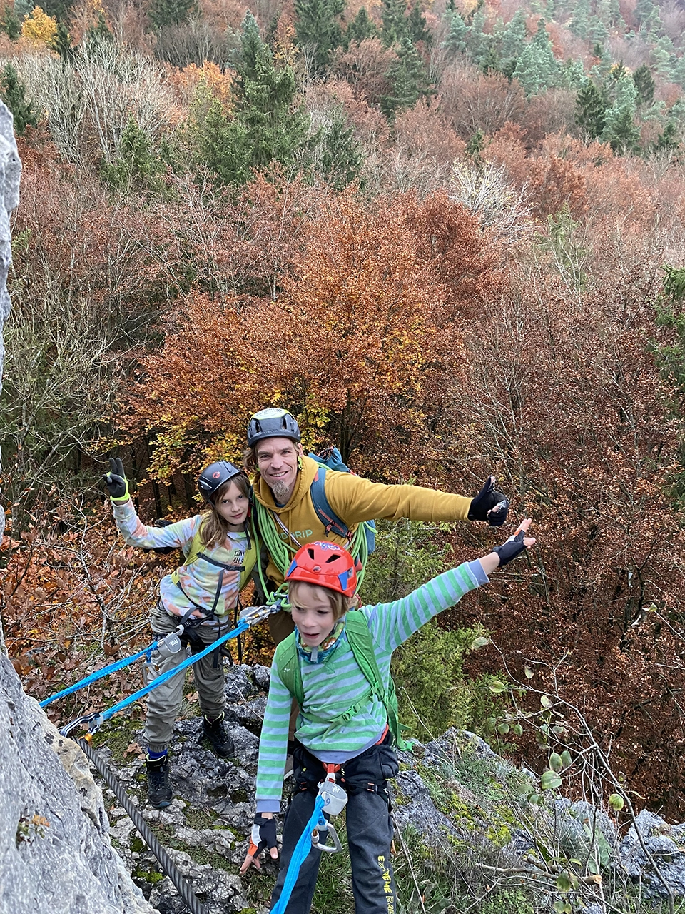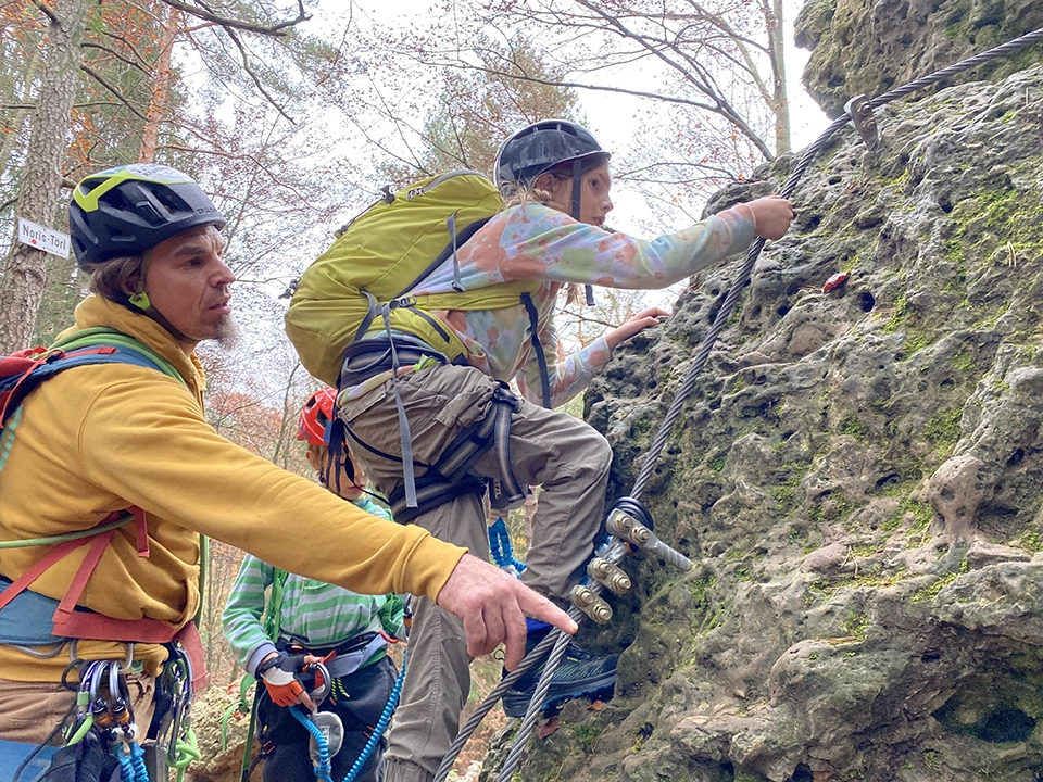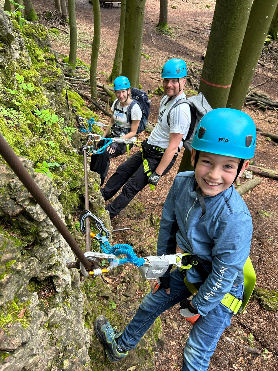 Bei unserer Familienklettersteigführung sollen Familien die Möglichkeit bekommen, im privatem Kreise zusammen am Steig eine gute Zeit und Spaß zu haben. Es besteht die Möglichkeit, je Erfahrung, verschiedene Teile des „Erwachsenenteils“ zu begehen und die „Kleineren“  können den „Bambinisteig“ begehen. Bei Bedarf können für die Kinder „Kletterspiele“ mit eingebaut werden. Der Kursinhalt ist individuell planbar!