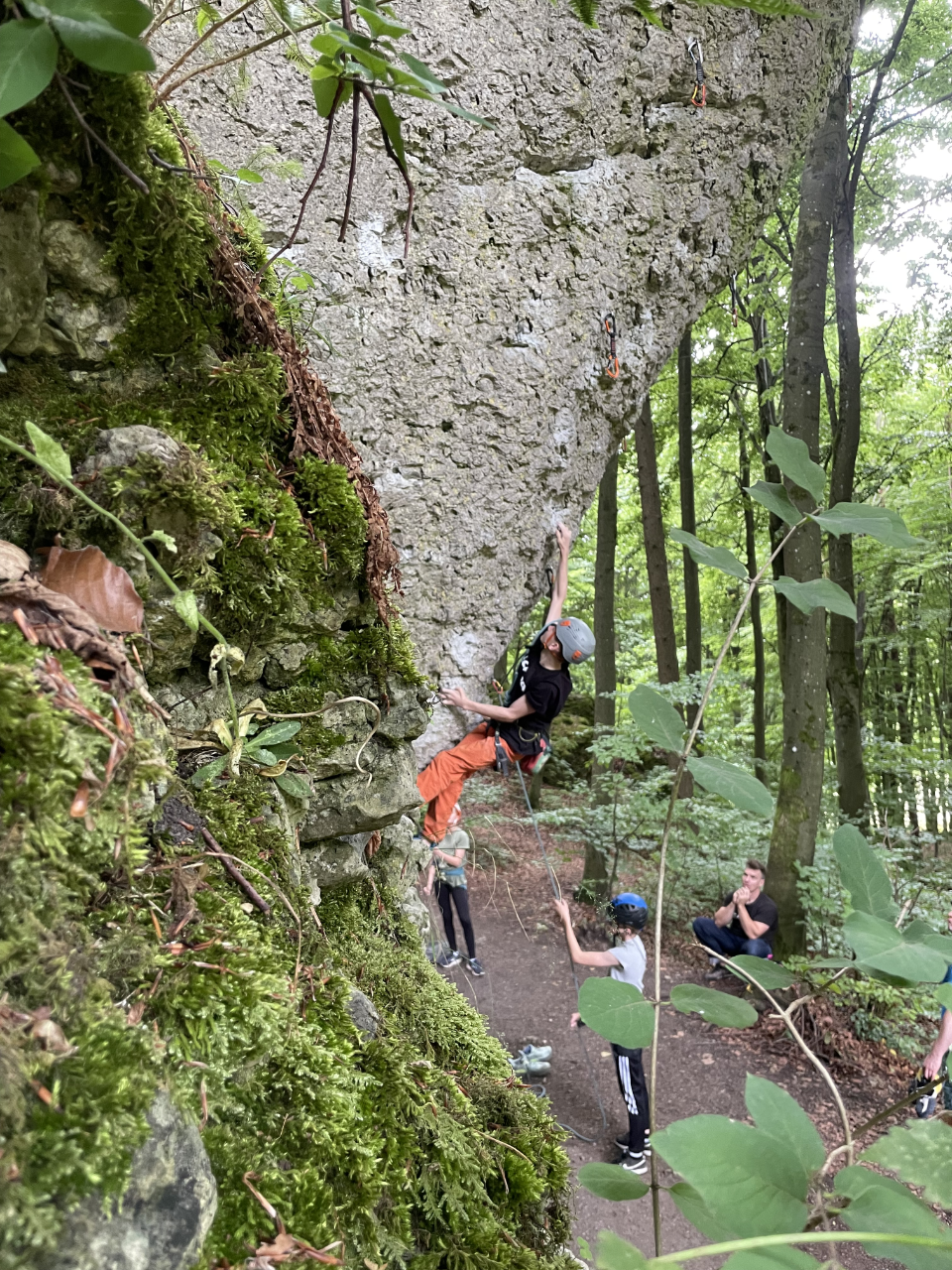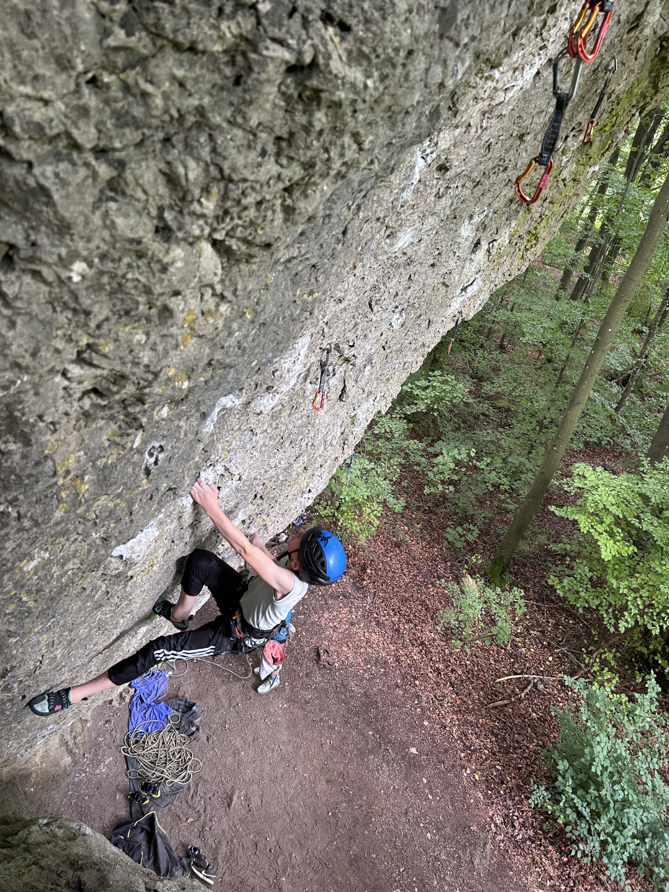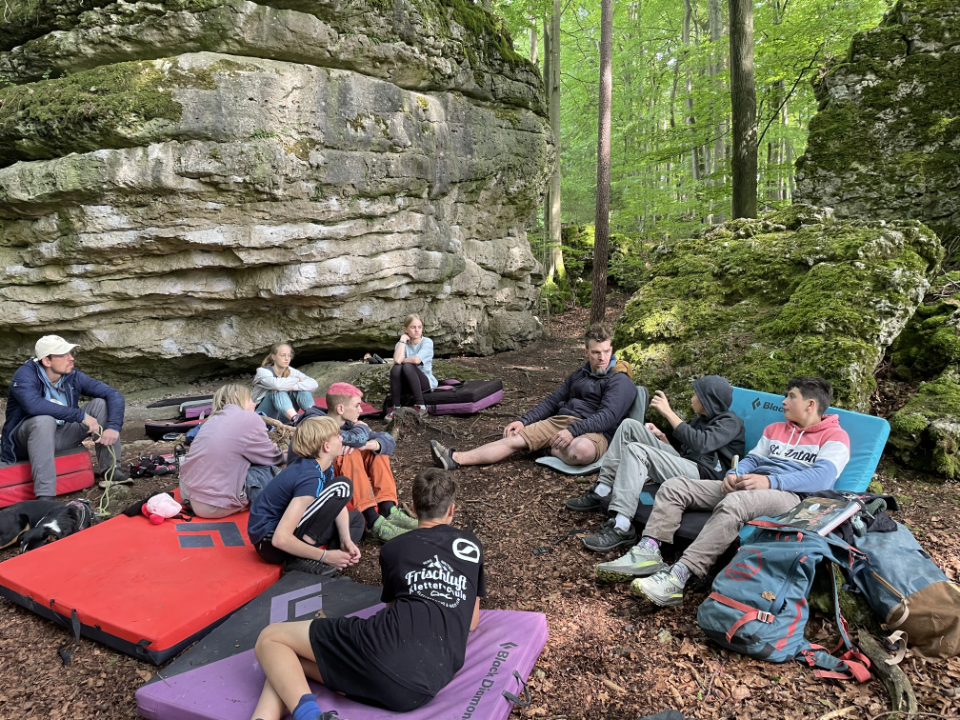 Fünf Tage können sich die Kids und Jugendlichen unter Anleitung von erfahrenen Klettertrainern am fränkischen Felsen austoben. Wir wollen unsere Teilnehmer/innen mit einem abwechslungsreichen Programm und viel Spaß auf dem Werdegang zum/zur selbständigen, verantwortungsvollen Kletterer/in unterstützen. Vom gemeinsamen Aufwärmen und Projekte ausbouldern, Bohrhaken setzen (der als Erinnerung mitgenommen werden kann), verbessern des Sicherungsverhaltens bis zum gemütlichen Abendausklang am Lagerfeuer ist für jede/n etwas dabei. Eine erlebnisreiche und sportliche Woche wartet auf die Teilnehmer/innen im schönen Frankenjura.