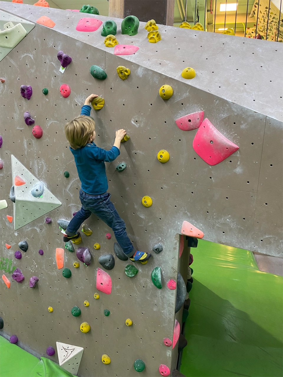 - Erste Klettermeter in der Halle (in geeigneten Routen für die Kinder angepasst) am Tag 2