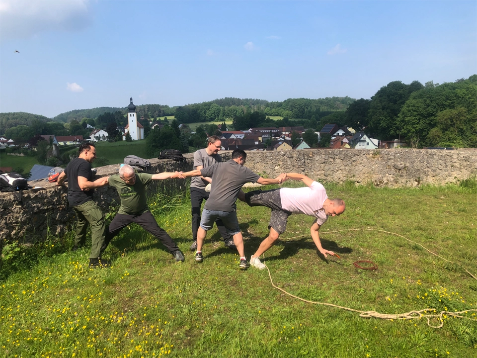 Sie wollen einen Tag in der Schönheit der Fränkischen Natur verbringen und dabei gemeinsam verschiedene Abenteuer erleben? Wir bieten Ihnen ein breites Spektrum an möglichen Teamevents. Beim gemeinsamen Bau einer Seilbrücke mit anschließender Teamabseilstation soll der Teamgeist gestärkt werden. Bei einer Abenteuerwanderung kann im Team der richtige Weg gefunden oder bei einer Klettersteigführung gemeinsam Kräfte mobilisiert werden. Sie sind eher auf der Suche nach einem gemeinsamen Erlebnis in der Natur? Auch da können wir Ihnen ein Angebot erstellen. Sie können z.B. gemeinsam eine Höhle begehen, ein Erlebnis fernab vom Büroalltag. Gerne können auch die die Naturerlebnisse mit Kooperationsaufgaben und Spielen kombiniert werden!