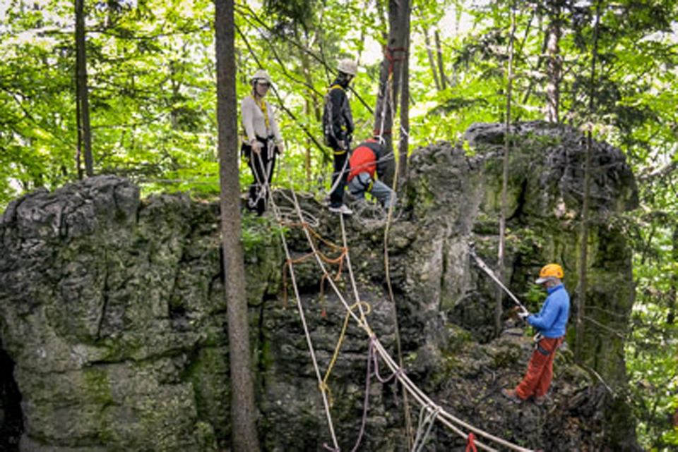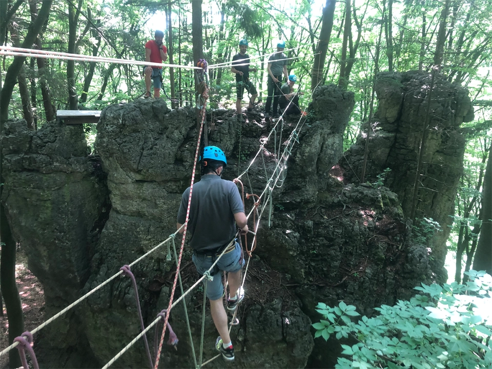 Ideal als Teamevent oder als Gruppenaktion! Die Teilnehmer sollen eine selbstkonstruierte Brücke aus Seilen über eine wilde Felsschlucht bauen um anschließend Seilgesichert die Brücke zu begehen. Am Ende können die Teilnehmer über eine Felswand selbst abseilen oder sich von Ihrem Team abseilen lassen. Diese Aktion kann einzeln gebucht werden oder in einen Outdoortag/ Event mit eingebaut werden.